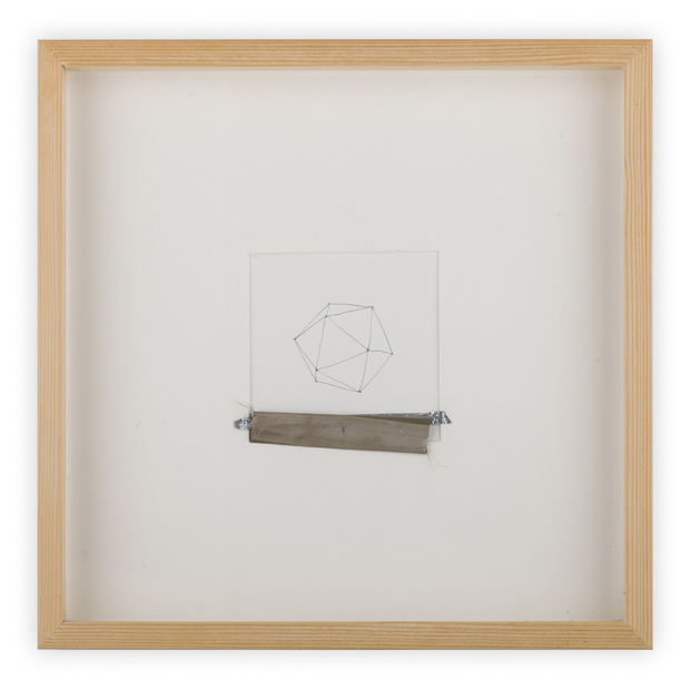 ICOSAEDRO/ GRAPHITE ON PAPER, ALLUMINIUM AND CLOTH APPLE COMPONENT/ IN WOOD FRAME CM. 13.5 X 13.5/ © 2018/ LE MONDE SERIES